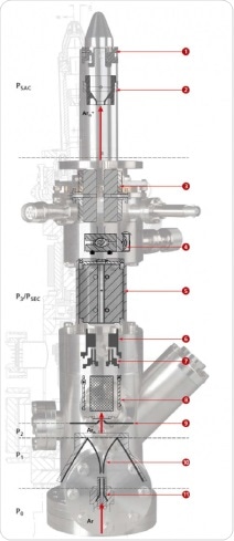 The ion source can be operated in monatomic Ar+ ion mode for conventional depth profiling inorganic and metallic samples. This yields a much higher sputter in this class of materials, which is known to be much higher for monatomic than cluster ions, making Ar+ monatomic mode key for depth profiling in realistic experimental times. Ion acceleration voltage can be varied between 500 eV and 8 keV.