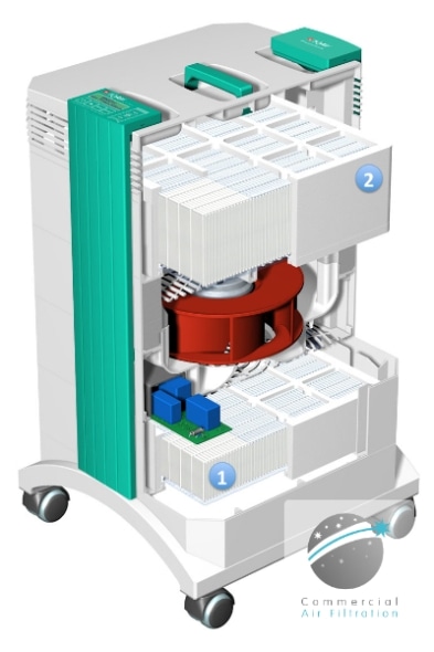 The Cleanroom 100 removes particulate pollution over two filtration stages: