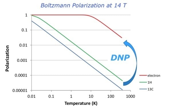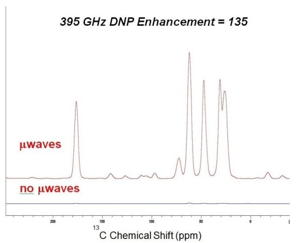 Signal enhancements from 20 to a factor of 200, driven by microwave irradiation to transfer polarization from unpaired electron spins to nuclear spins. The unique high power gyrotron systems, delivering microwaves at 263 GHz,395 GHz, and 527 GHz are robust, safe and easy-to-use, enabling long term DNP experiments without time limitations.
