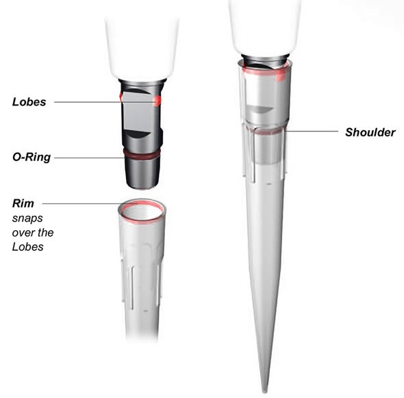Do your pipette tips ever loosen, leak or fall off? This is a common issue in laboratories, caused by the use of universal pipette tips. Such tips require “hammering on” which stretches the shape of the pipette tip rim. The stretched pipette tip rim immediately starts moving back to its original shape, away from the tip cone. This can cause leaking, misaligned tips and even pipette tips that completely fall off the pipette!