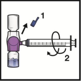 1. Remove the blue cap from the BAXJECT III device. Connect the syringe to the BAXJECT
