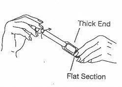 thin end of the applicator and discard it. DO NOT squeeze the thick end while twisting