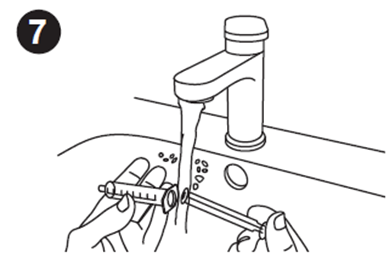 and two purple 6 mL syringes with 0.2 mL graduations and the medicine bottle, either: