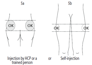 5b. If you are injecting yourself: use the upper outer part of your thigh.