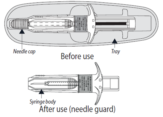 7. Before injecting, remove the pre-filled syringe from its tray. Discard the tray.
