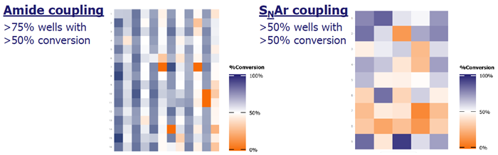 - Different chemistries were validated on microscale (~50 μL reaction mixture volume, <one mg of reactants per well)