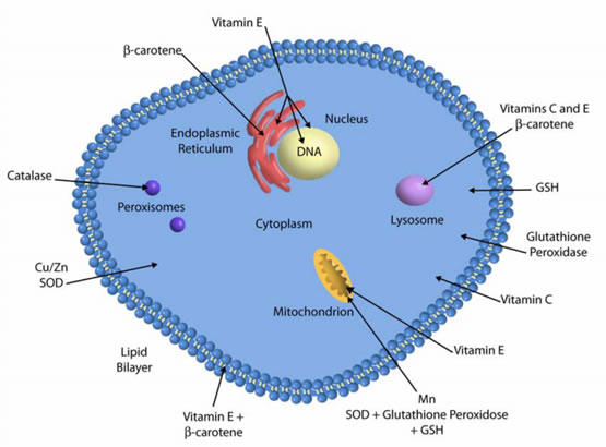 These form the body’s endogenous defence mechanisms to help protect against free radical-induced cell damage. The antioxidant enzymes – glutathioneperoxidase, catalase, and superoxide dismutase (SOD) – metabolize oxidative toxic intermediates.