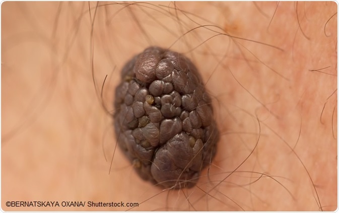 Epidermal nevi are unsightly but cause few or no symptoms. In one type called the linear inflammatory verrucous epidermal nevus, there is intense pruritus around the lesion. Mostly, however, they remain stable and non-problematic. It is rare that these nevi give rise to other growths, but when they do, it may be benign, such as the syringocystadenoma papilliferum, or malignant, such as a basal cell or squamous cell carcinoma of the skin. For this reason, any change in an epidermal nevus must be seen by a dermatologist and a biopsy done to rule out cancerous change.