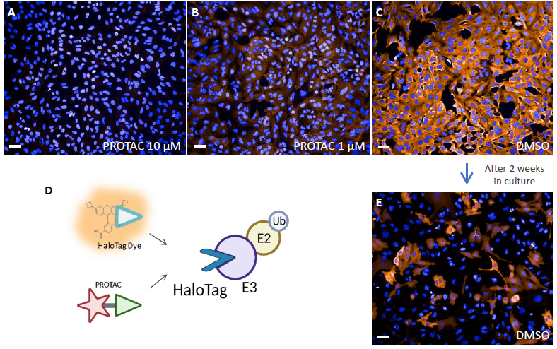 - PROTACs will be evaluated in endogenously tagged cell lines expressing the desired Halo-Tagged E3 using immunofluorescence.