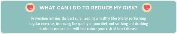 Exercise is a great way of protecting yourself against heart disease. It works to lower your blood pressure, improve circulation and will increase your heart’s strength. Try and get some cardiovascular exercise, such as jogging, swimming or cycling 3-5 times each week.