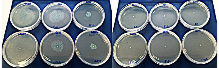Figure 1. Dose-dependent swarming inhibition by VEI-0026 against multi-drug resistant (MDR) P. aeruginosa clinical isolate (trachea). IC50 ~200 nM. The result is representative of efficacy against MDR isolates of sputum, urinary tract, skin, and wound infections. All tested isolates are resistant to β-lactams (including carbapenems), aminoglycosides, and fluoroquinolones. Image Credit: Image courtesy of Rory Triniman et al., in partnership with ELRIG (UK) Ltd.
