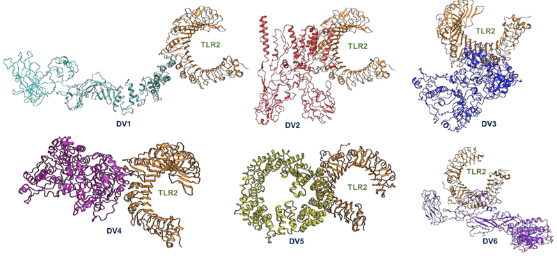 RMSD and RMSF analysis confirmed DV5 as the most stable construct, with strong structural integrity and receptor binding.