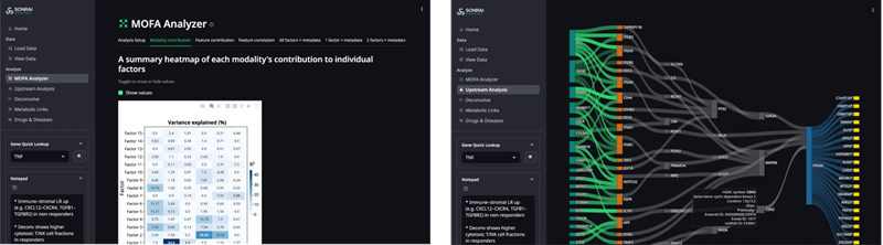 Scientists can statistically compare and visualize integrated results (Figure 8), for example, linking deconvolution-derived cell-type proportions or MOFA latent factors to clinical outcomes. This empowers scientists to ask deeper, context-driven questions that drive hypothesis generation and mechanistic understanding.