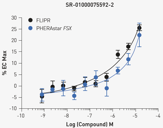 Fig 3. Concentration response under optimized conditions 1000 cells were treated with the indicated concentration of ML297 for 10 minutes. Comparable results are obtained with FLIPR or PHERAstar FSX. Image Credit: Image courtesy of Sivakumar, M et al., in partnership with ELRIG (UK) Ltd.