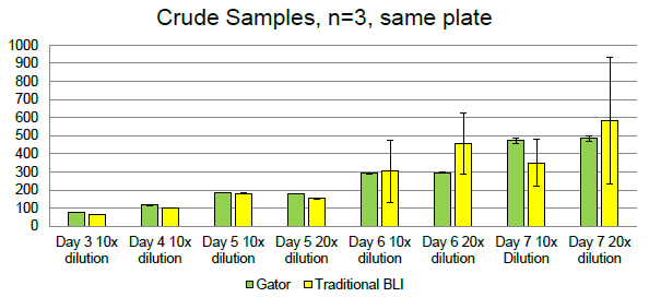Low-cost titer measurement in crude samples.
