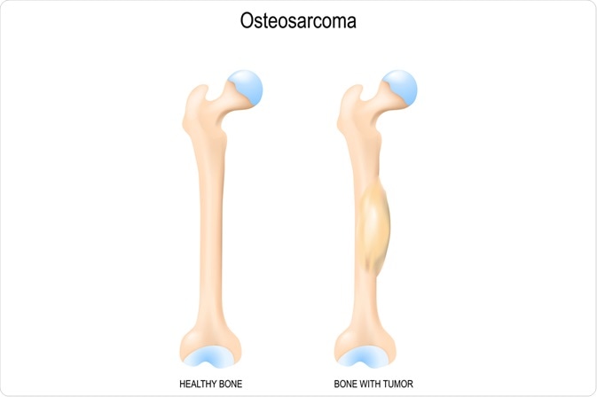 Osteosarcoma is the most common type of cancer affecting the bone and involves abnormal osteoblast cells that are responsible for the construction of the bone.