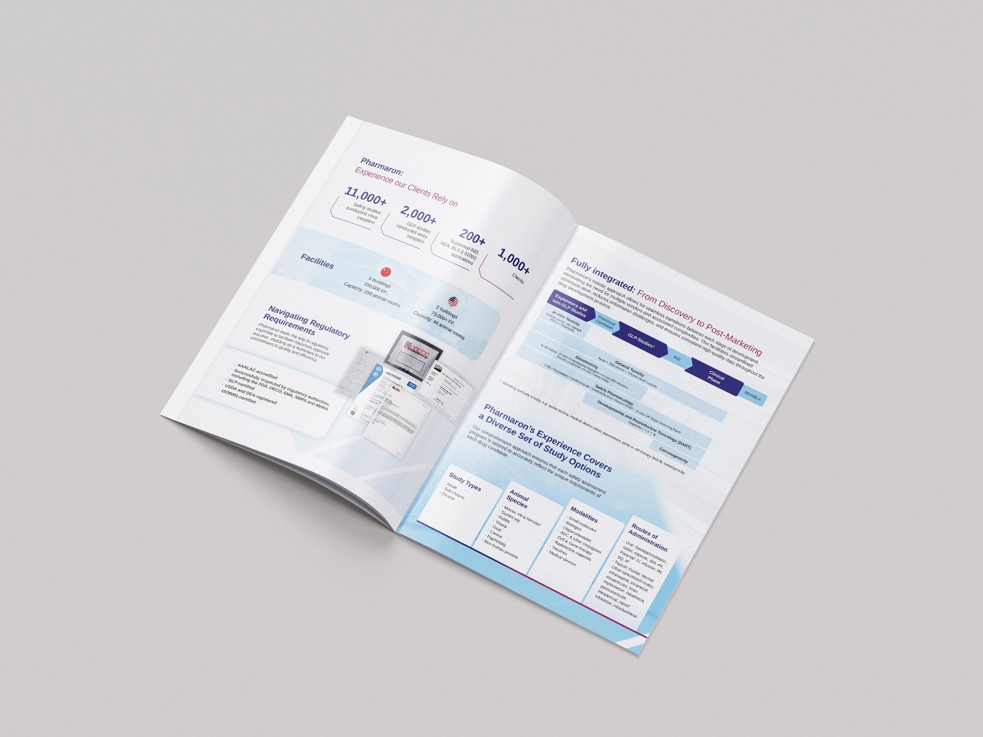 - End-to-end capabilities: Pharmaron provides a full range of safety evaluation services, including acute and chronic toxicity studies, developmental and reproductive toxicology, genotoxicity, and environmental risk assessments.