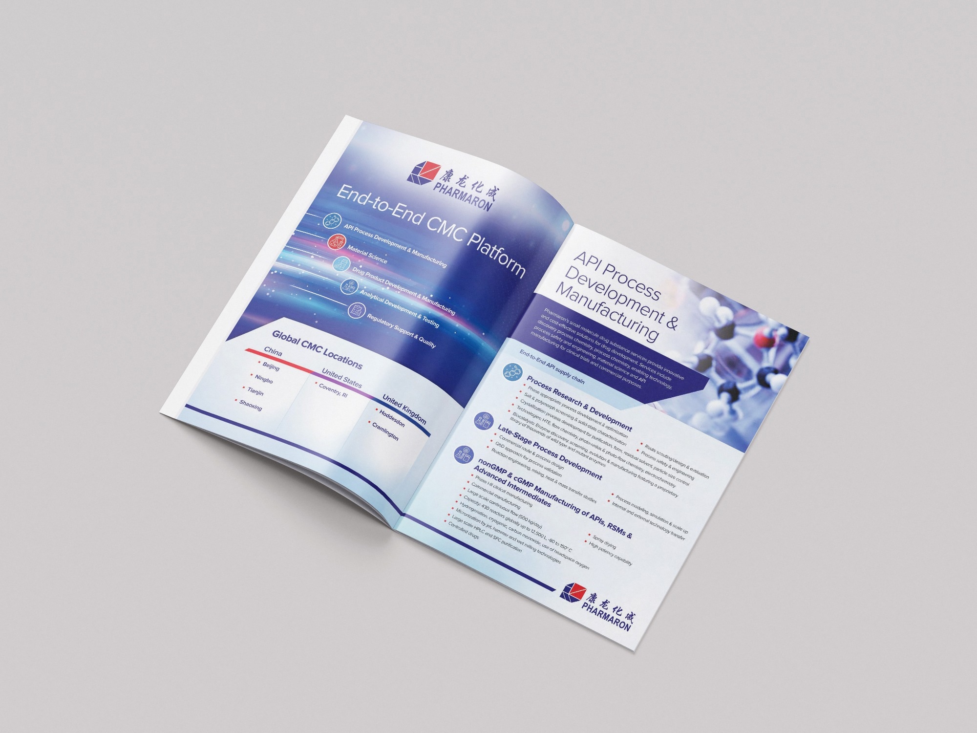 Pharmaron offers a fully integrated CMC platform for small molecule APIs and drug products. This covers every stage of development and manufacturing to meet global regulatory standards.