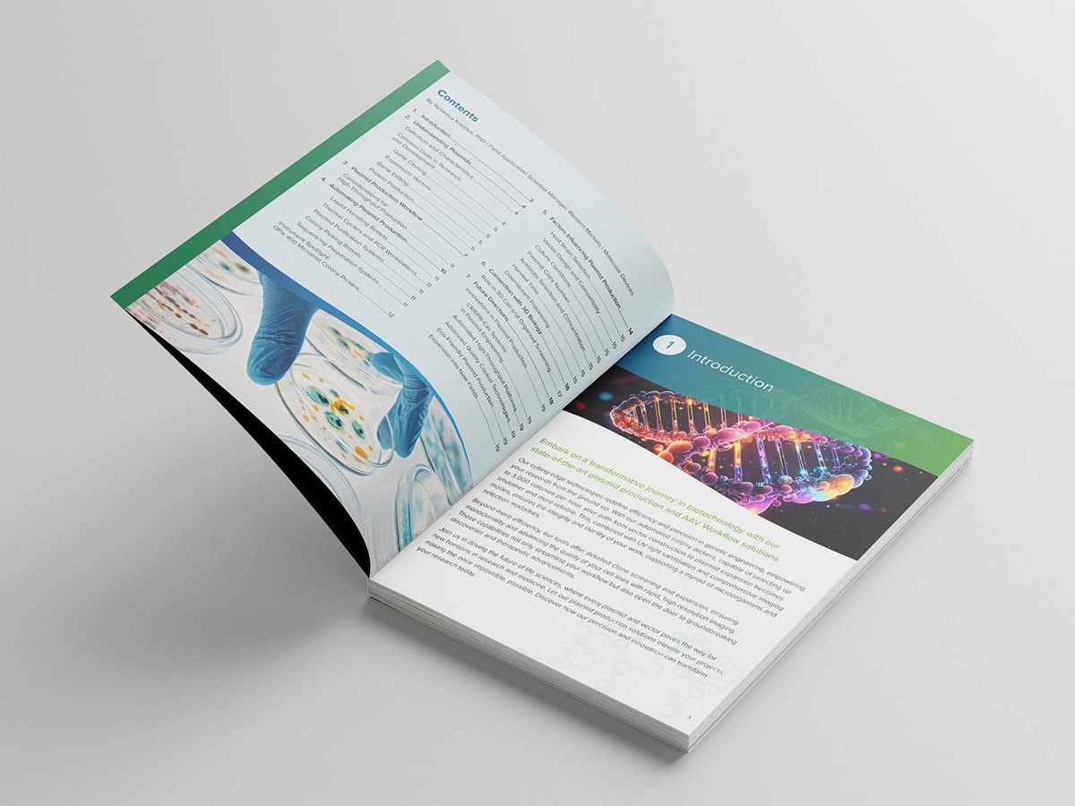 - Step-by-Step Plasmid Production Workflow: A clear breakdown of the plasmid production process, from raw DNA isolation to purification. The guide highlights how tools like the QPix® 400 Series Microbial Colony Pickers can enhance efficiency and scalability through automation.