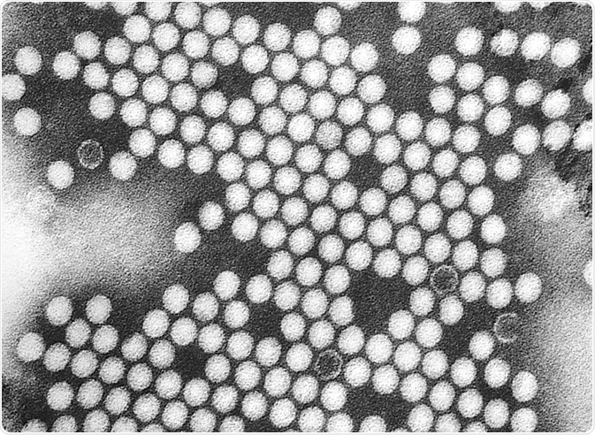 Electron micrograph of polovirus virions. Credit: Everett Historical/Shutterstock.com