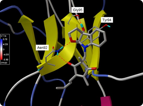 To design a derivative of MDL-A that would dock with D1 at that specific hot spot, Li used the CombiGlide screening program to search through more than 6,000 drug fragments. So far, he has identified two potential solutions by combining the “top” half of the MDL-A molecule with the “bottom” half of a benzyl molecule or a pyrazole molecule. These candidates preserve the important binding features of the MDL-A, while yielding molecules with strong molecular bindings that also are easier to synthesize than the original MDL-A.