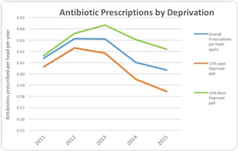 New research by Antibiotic Research UK, the world’s first charity created to develop new antibiotics in the fight against superbugs, and high-performance analytic database company EXASOL has discovered that while the number of antibiotic prescriptions is coming down across England, GP practices in the most deprived parts of the country are prescribing 20% more and, worryingly, antibiotic prescriptions are on the increase in these deprived areas. For instance, in Clacton-on-Sea, the UK’s most deprived area, we see antibiotic prescribing rates of almost twice the national average.