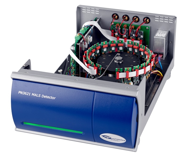 Postnova Analytics PN3621 MALS detector sets a new standard for sensitive, precise and flexible Multi-Angle Light Scattering detection for Size Exclusion Chromatography (SEC) and Field Flow Fractionation (FFF) systems.