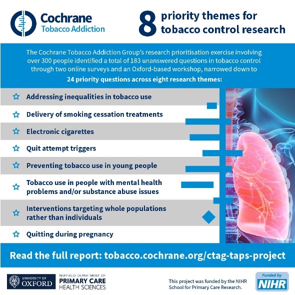 This prioritization exercise was funded by the NIHR School for Primary Care. The Cochrane Tobacco Addiction Group is funded by the NIHR Systematic Reviews Programme. Results from the prioritization exercise are published in the journal Addiction.