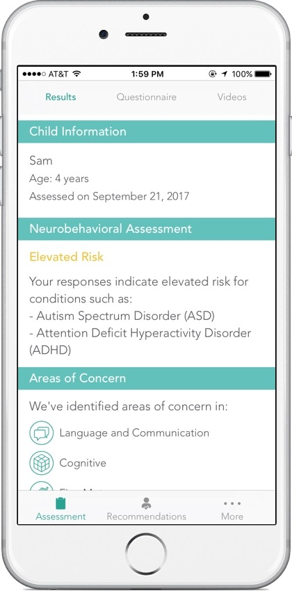 One of the great things about machine learning is the ability to fine tune the algorithm to take into account real-world prevalence. Meaning that Cognoa is able to provide a different output for children in a primary care practice where the prevalence is 1:68 versus with specialists where the prevalence is closer to 1:30.