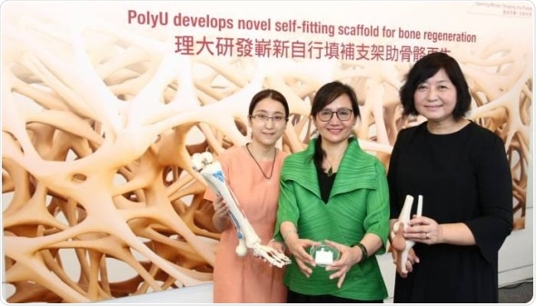 Researchers from The Hong Kong Polytechnic University (PolyU) have designed and fabricated a high performing self-fitting bone scaffold by combining a shape memory foam and hydroxyapatite (the principal mineral component of bone tissue). It can be safely and conveniently implanted into bone defects and induce bone regeneration, thus enhancing the recovery of bone injuries and fractures. Up to date, no bone scaffold in commercial market possesses such shape memory self-fitting effect.