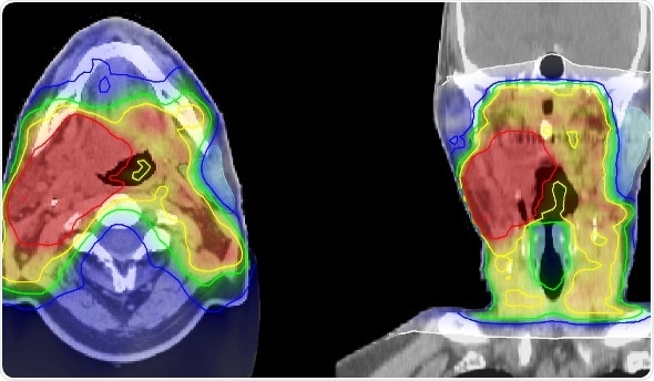 Irradiation plan of a head and neck tumor. © University Hospital of the Ludwig-Maximilians-Universität München