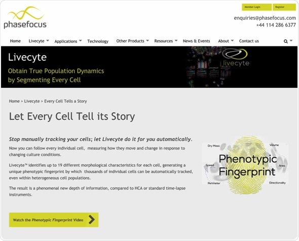 We took on board customer feedback when designing the new website and believe the new format delivers the content and functionality needed. The revised site clearly illustrates the unique power of Livecyte and brings together all relevant resources, allowing customers to remain informed about new developments relating to both products and Phasefocus’ corporate activities.”