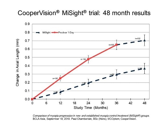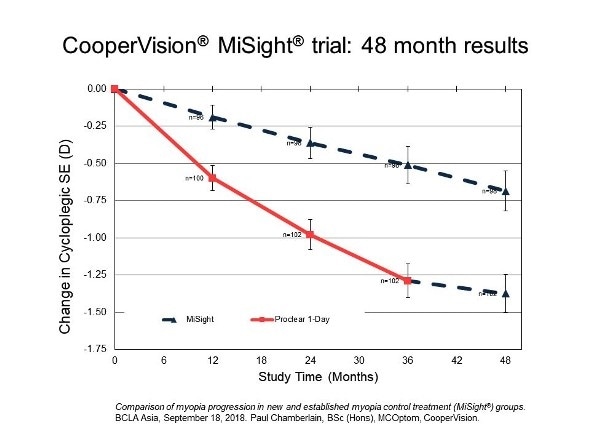 The four-year results are another great learning for CooperVision and the entire optical industry on the capability to slow the progression of myopia in children. Though children benefit at whatever age the treatment is started, the sooner their myopia is managed with MiSight® contact lenses, the more effect and benefit they receive in reducing final levels and the future risk of related vision impairment issues,”