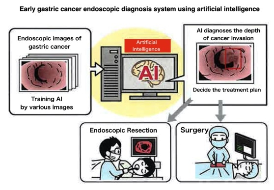 However, although advances in endoscopic treatment technology has led to the early detection of gastric cancer, decisions on whether to use endoscopy treatment or surgery mainly depend on how deep the cancer has invaded the stomach wall. Furthermore, these decisions are made by careful examination of endoscopic images by experienced physicians. At present, there are many cases where endoscopic treatment is performed first where surgery would have been more appropriate and vice versa.