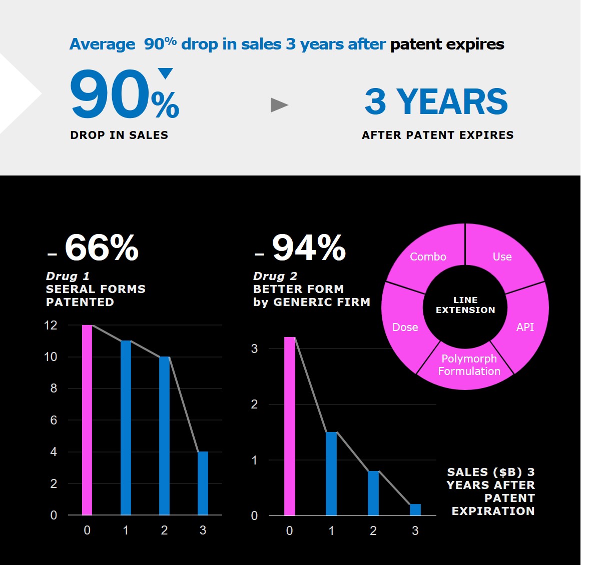Patent expiration is a threat for pharmaceutical industry and an opportunity for generic companies. In average, there is a 90% decrease of revenue after the patent expiration of a drug. There are different strategies to line extension such as combination therapies, new medical applications, a new isomer, different dosing and new solid forms (crystalline or amorphous). Millions are spent by drug originators and generics firms on intellectual property lawsuits dealing with solid form. When this happens, you want the best data in your hands!