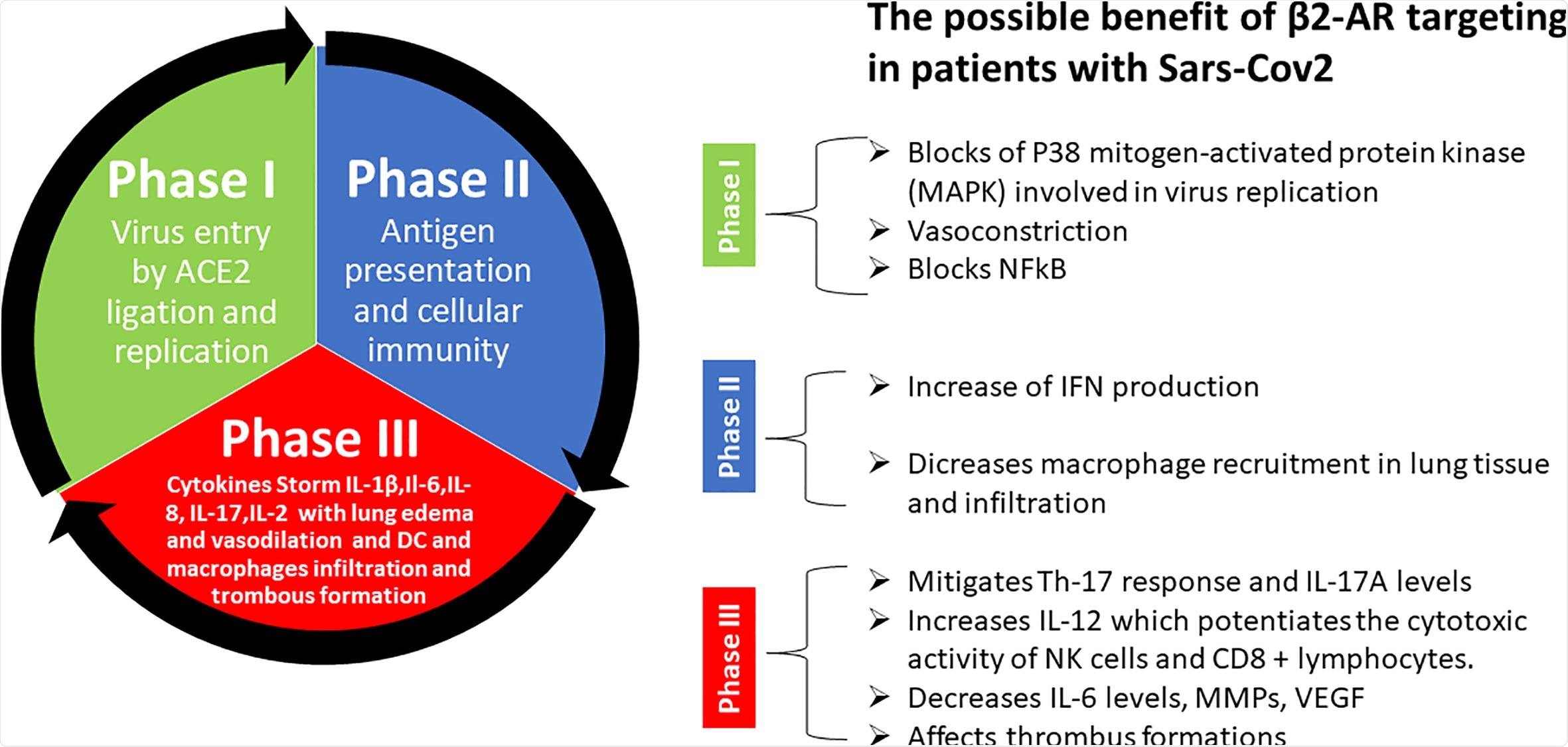 However, evidence support that activation of β2-adrenergic receptors leads to the generation of reactive oxygen species (ROS) which trigger the secretion of inflammatory cytokines. Moreover, catecholamines (activators of β2-adrenergic receptors) can promote the development of the inflammatory lymphocytes (specifically the Th17 response) which has been recognized to be responsible for the severe immune reaction associated with COVID -19.