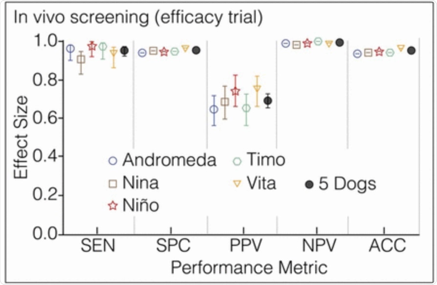 Vesga, O., Agudelo, M., Valencia-Jaramillo, A. F., et al. (2021). Highly sensitive scent-detection of COVID-19 patients in vivo by trained dogs. medRxiv preprint. doi: https://doi.org/10.1101/2021.05.30.21257913. https://www.medrxiv.org/content/10.1101/2021.05.30.21257913v1.