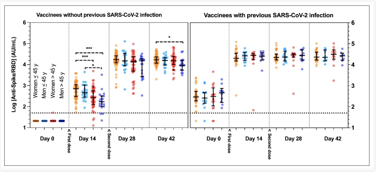 The researchers found that among the multiple confounding factors investigated in this study, previous SARS-CoV-2 infection was the most powerful factor in predicting the magnitude of the serological response. Moreover, people who were previously infected with SARS-CoV-2 were found to develop a more rapid and significant serological response as compared to the naïve subjects.