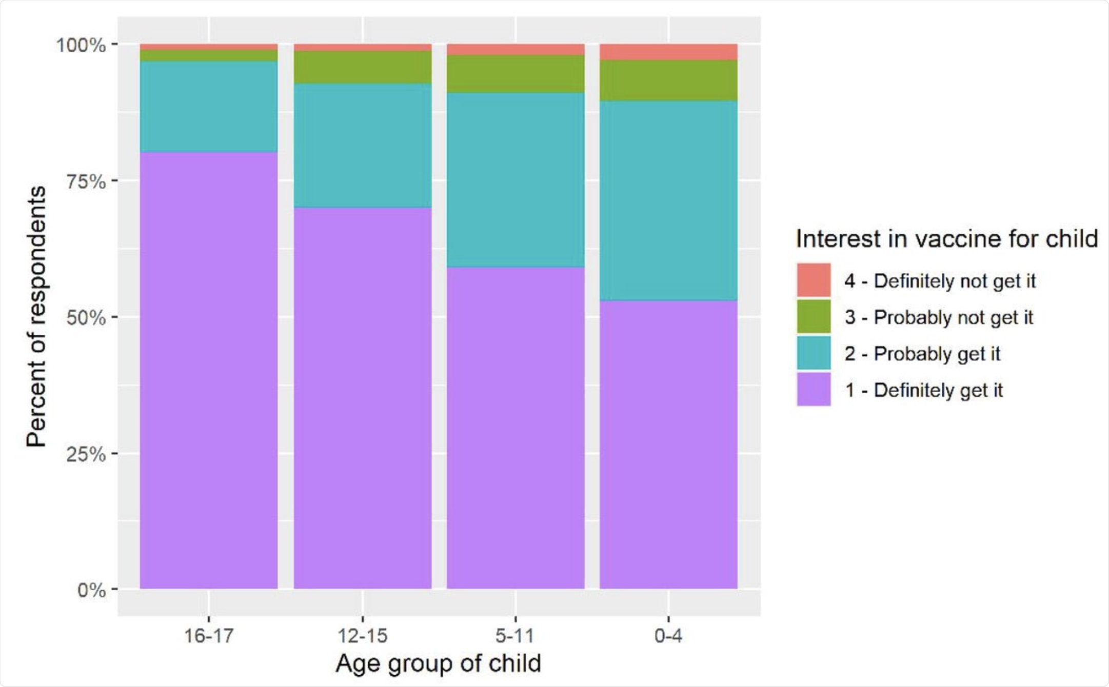 Vaccine interest among parents with children in each age group (16-17, 12-15, 5-11, and 0-4 years).