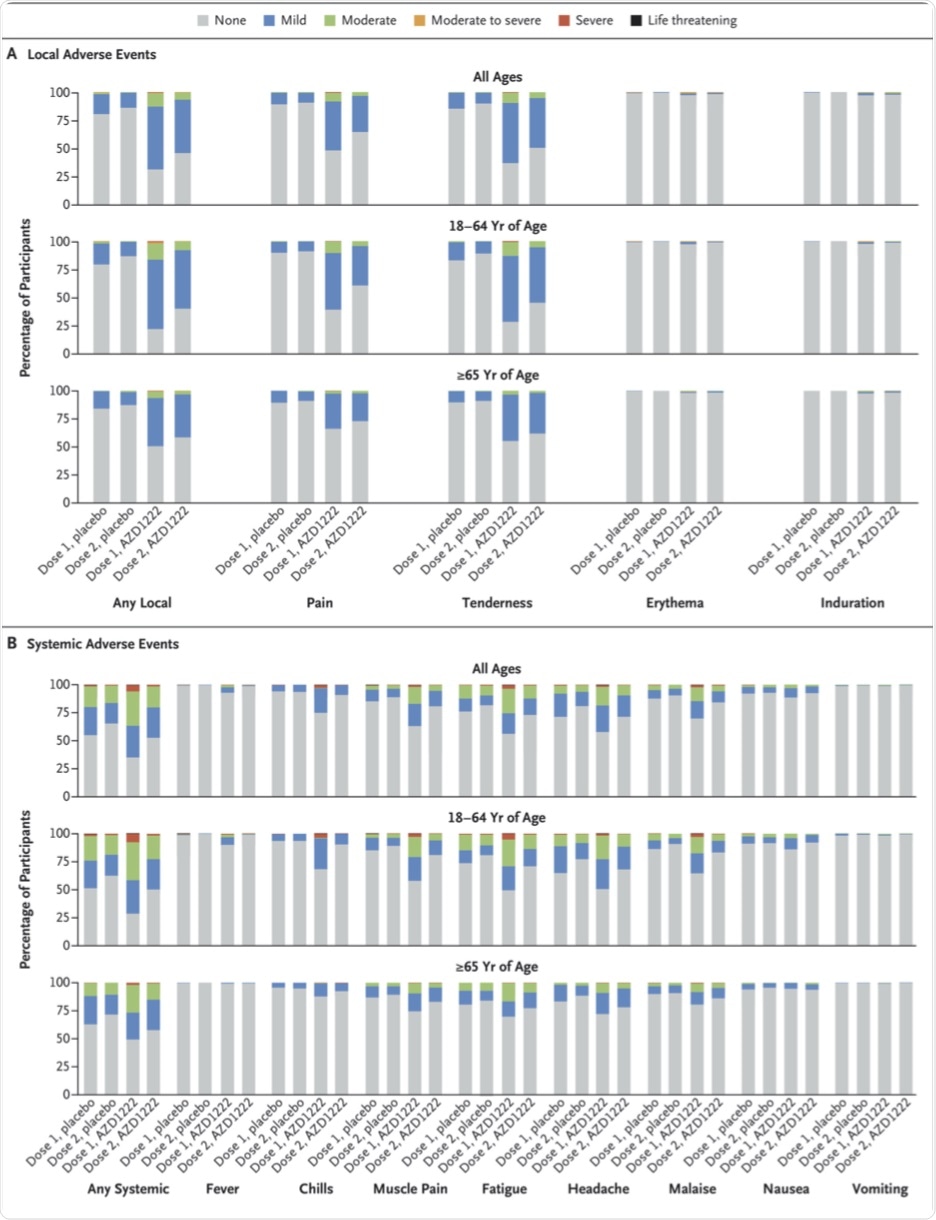 The AZD1222 vaccine appears to be safe and effective in preventing symptomatic COVID-19 among both young and older individuals. Two doses given at an interval of four weeks reduced symptomatic illness by 74% from 15 days after the second dose. Severe and critical cases were avoided altogether, while emergency room visits and hospitalizations were markedly reduced.