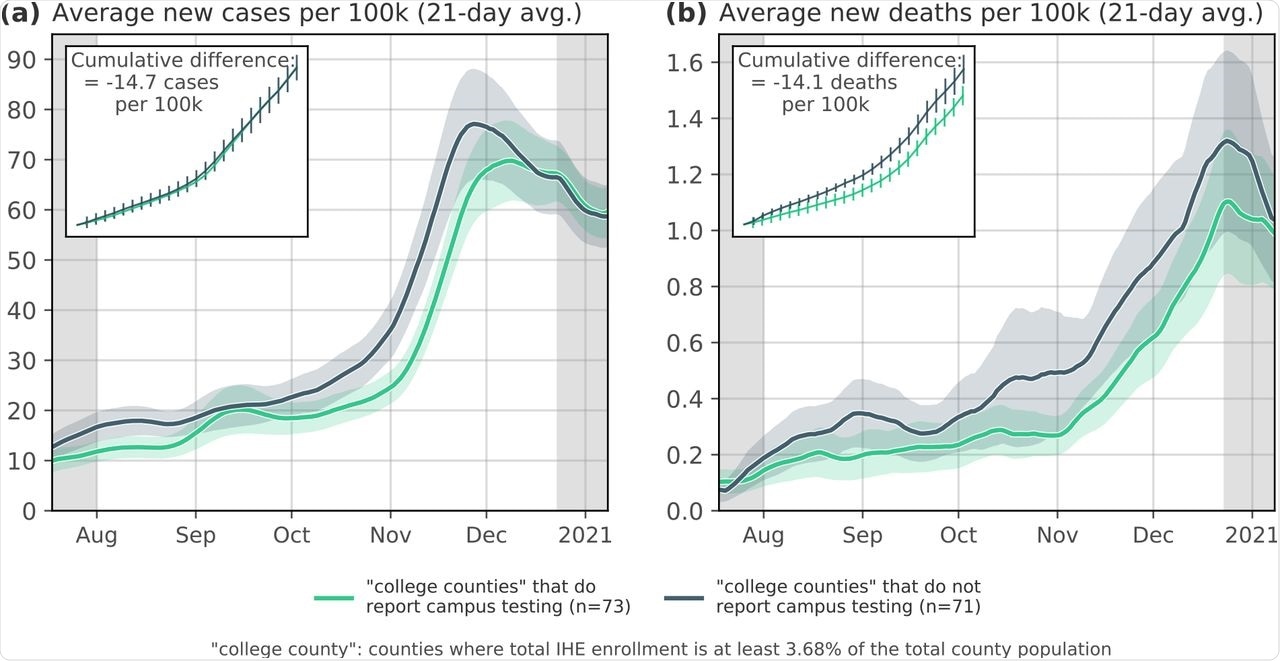 The current study highlights clear differences in COVID-19 outcomes based on IHE reopening policy. Since large numbers of young adults who are likely to have increased mobility and less likely to practice COVID-19 mitigation behaviors are enrolled in HIEs, the researchers concluded that campus testing in counties with a large student population can play a relevant role in mitigating the number of COVID-19 outbreaks in the surrounding population.