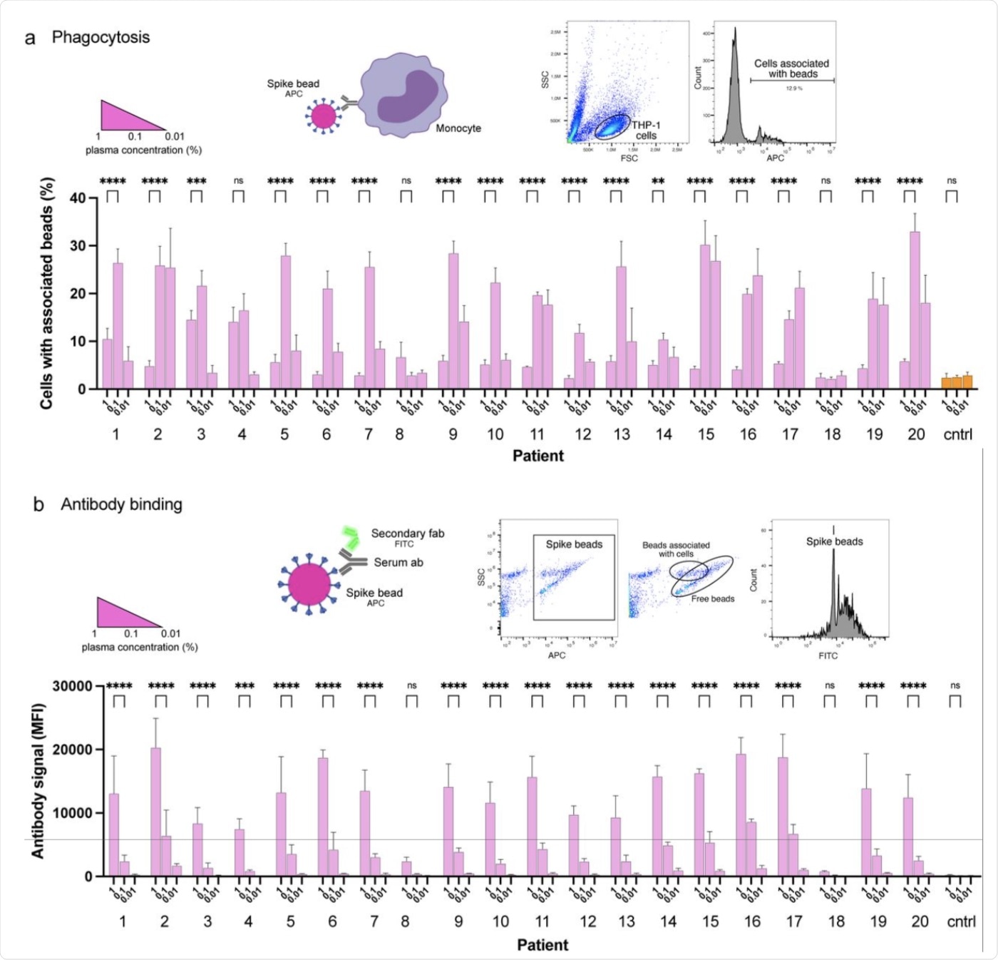 A new study published in the preprint server bioRxiv* showed evidence that convalescent patient plasma and monoclonal anti-spike antibodies were able to induce phagocytosis at high antibody concentrations. This study also demonstrated that neutralization potential did not have any effect on the activation and inhibition of phagocytosis. This study also utilized an experimental animal infection model to determine the role of non-neutralizing antibodies in providing protection against SARS-CoV-2.