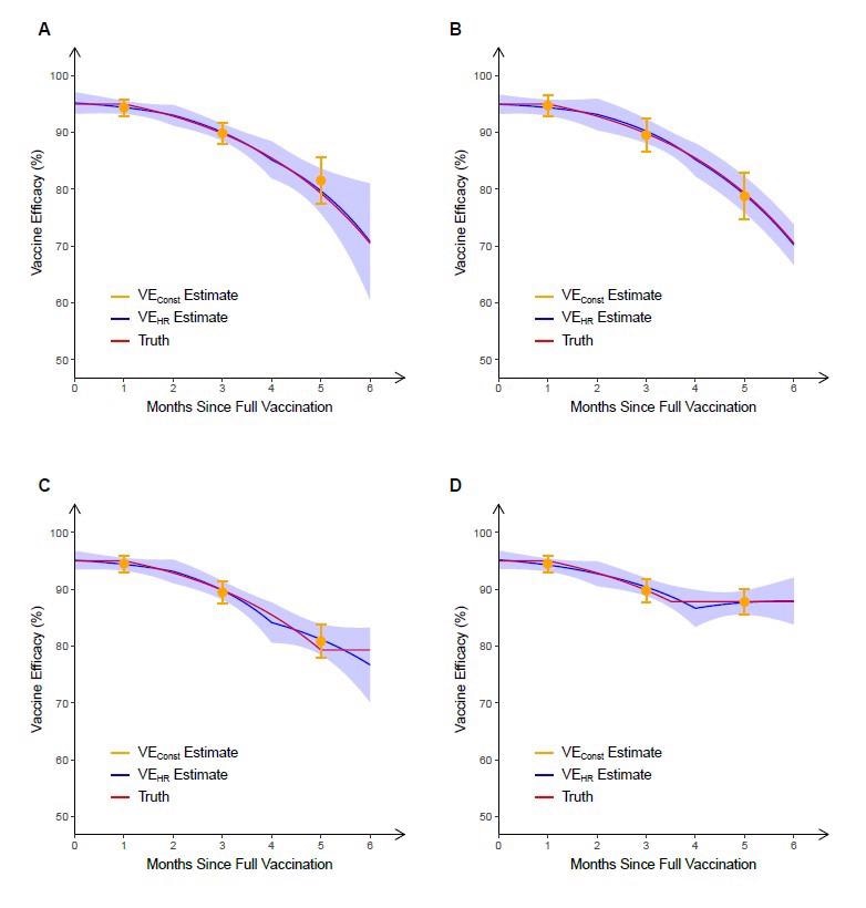 The authors highlight that their newly proposed approach, based on estimating VEHR, improves sensitivity for evaluating the true duration of VE using data from both observational studies and phase three clinical trials as it allows VE to vary continuously by time post-vaccination as well as adjusting for changes in disease incidence over calendar time. They point out that this approach was used effectively in a study in VE in North Carolina and argue that analyses of observational data should adjust for demographics and comorbidities as well as other factors to reduce confounding bias. This information could be essential for public health policymakers and epidemiologists attempting to model the disease and could help inform future policy on the spread of the disease and the necessity for booster shots.