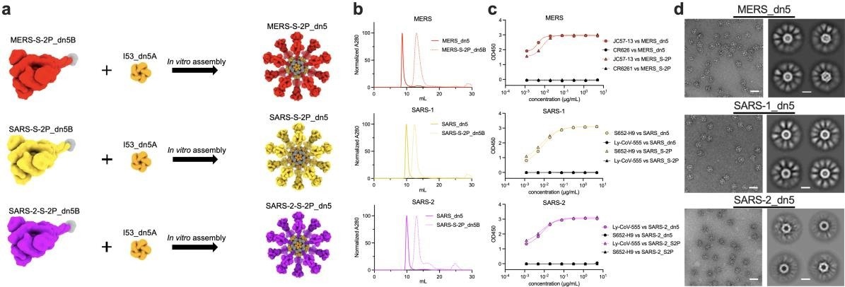 In the present study, researchers engineered nanoparticles displaying the spike protein trimers from different CoVs. The two proline mutations (2P) which stabilize the prefusion spike conformation were introduced in the spikes from SARS-CoV, Middle-east respiratory syndrome (MERS)-CoV, and SARS-CoV-2, and adapted the antigens for display on the previously-described two-component nanoparticle platform, I53_dn5.