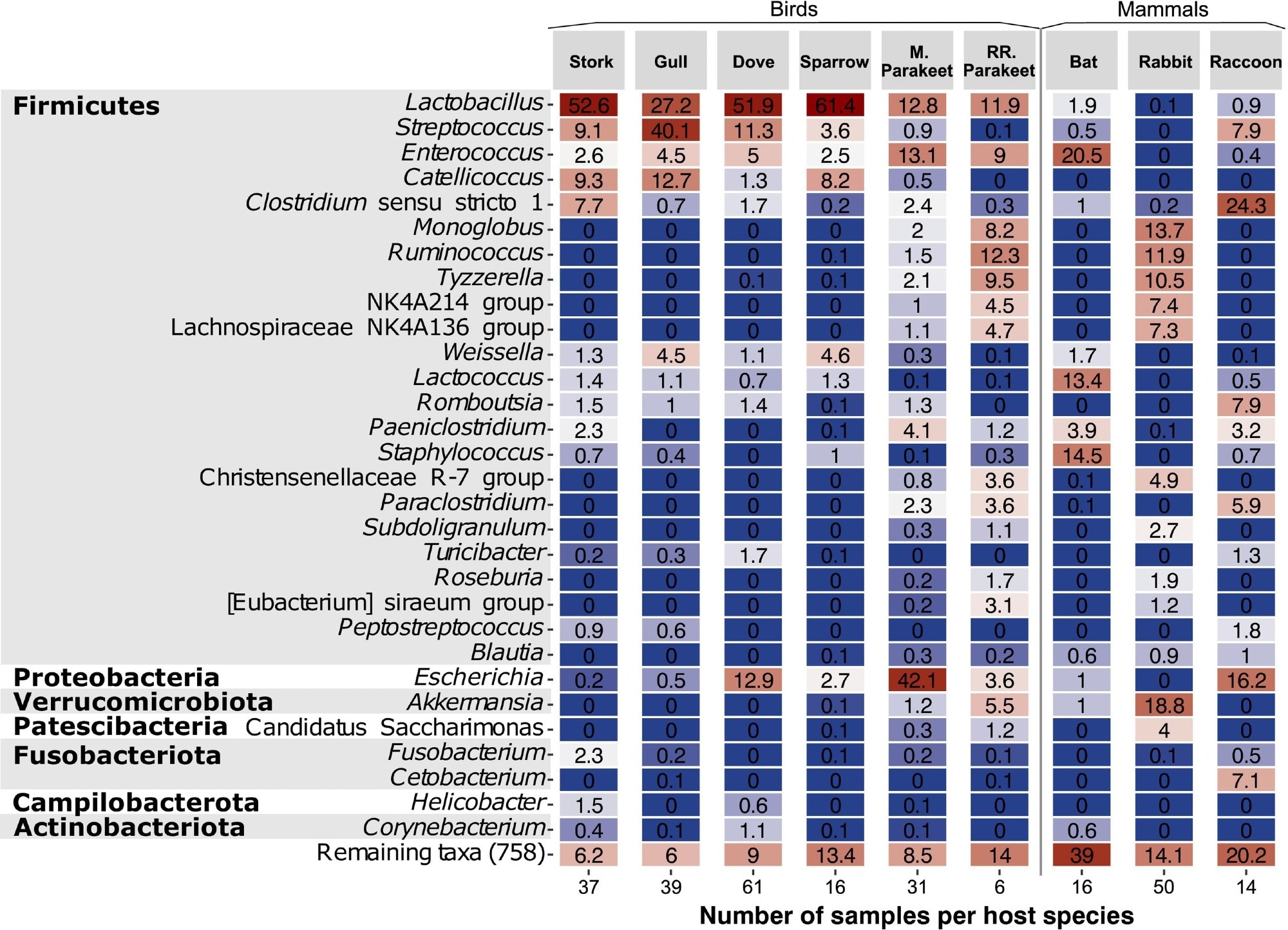 A total of 21 potentially zoonotic bacterial genera were isolated from the fecal samples of all studied urban vertebrate species. Ten of these genera included zoonotic species that were mandatory to be monitored in the European Union.
