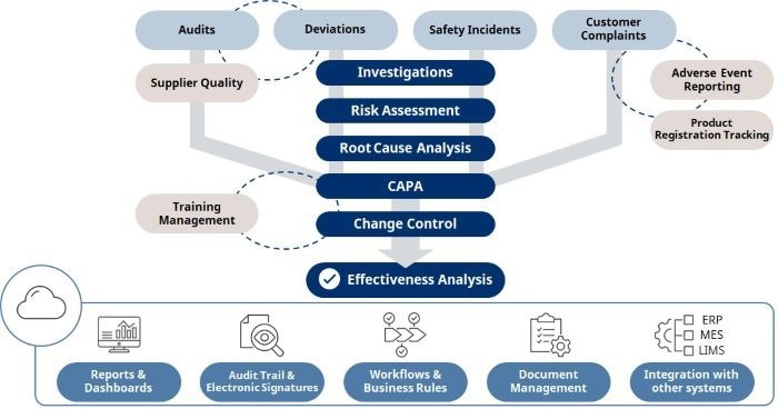 At the same time, quality assurance with the production of pharmaceuticals and food & beverages involves a broad range of processes that include dealing with deviations, implementing CAPA, and managing any necessary changes to manufacturing procedures, so smooth and correct management of these processes is a necessity.
