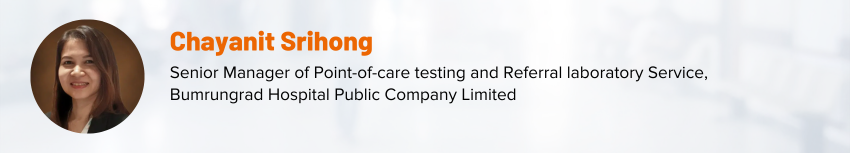 Chayanit Srihong is the Senior Manager of Point-of-care testing and Referral laboratory Service at Bumrungrad Hospital Public Company Limited. Chayanit Srihong has over 15 years of experience planning and operating POCT systems, planning and operating referral lab services, and in laboratory business development.