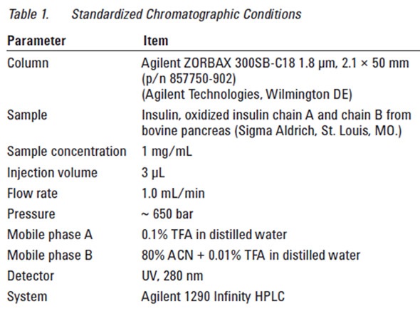 The results showed that using Agilent ZORBAX Rapid Resolution High Definition (RRHD) 300SB-C18 1.8 µm columns resulted in faster and reliable separation of the isoforms and purified versions of insulin from the sample.