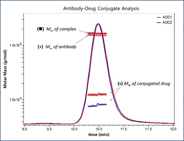 Reprinted with permission from “Antibody Drug Conjugate (ADC) Analysis” by Wyatt Technology Corp. Graphs and illustrations reprinted with permission from Wyatt Technology.