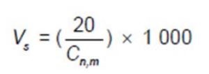 Where Vs is the minimum single sample volume for each location in liters, and Cn,m is the class limit for the largest particle size (n) defined for the class limit (m).